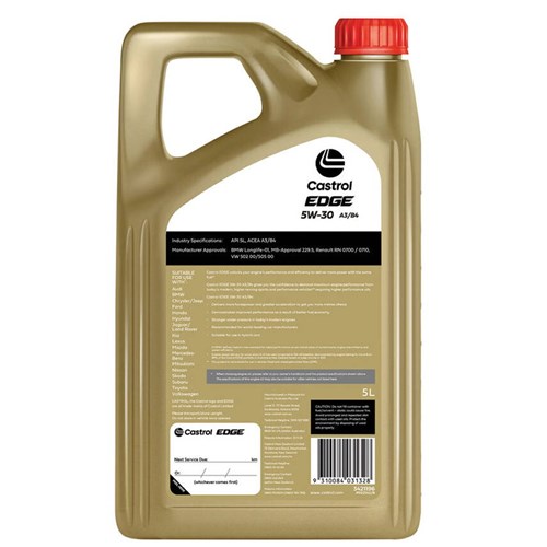 The ultimate test of performance, on the track Castrol EDGE products are pushed to the limit by some of the best in world motorsport including BWT Alpine F1 Team, Ford M-Sport, and in Supercars by Tickford Racing. Castrol EDGE 5W-30 A3/B4 is an advanced full synthetic engine oil suitable for use in automotive petrol, diesel and hybrid vehicles, where the manufacturer recommends an ACEA A3/B4, API SL/CF or earlier specification 5W-30 lubricant.