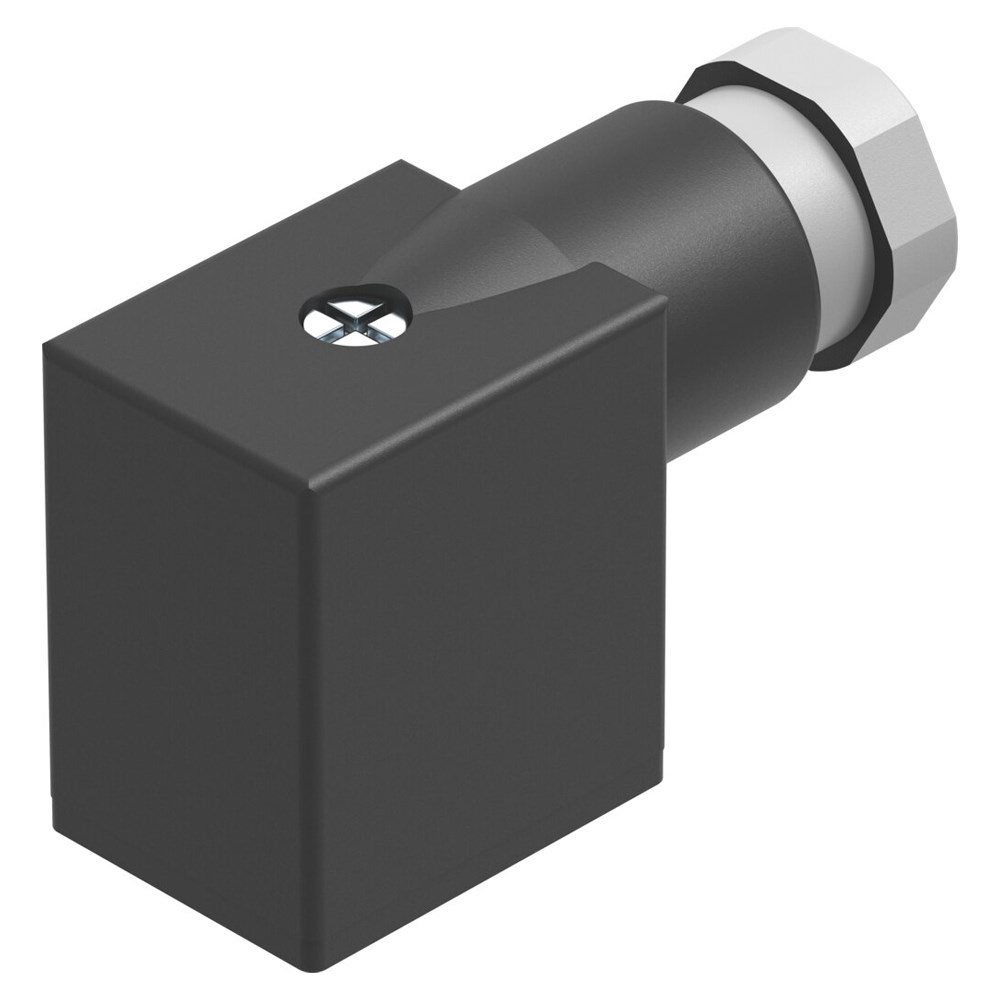 A robust and versatile 3-pin socket designed for Festo F8 armature valves, offering reliable electrical connections in industrial applications. The MSSD-F features an angled, 180° rotatable cable outlet for flexible installation, allowing optimal orientation in tight spaces. Constructed with a durable polymer housing and NBR seals, it provides IP65 protection in assembled state, ensuring dependable performance in harsh environments.
