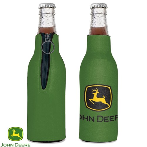 Keep your beverage chilled in style with this John Deere 375ml Foam Rubber Bottle Cooler featuring their trademark logo in JD green.