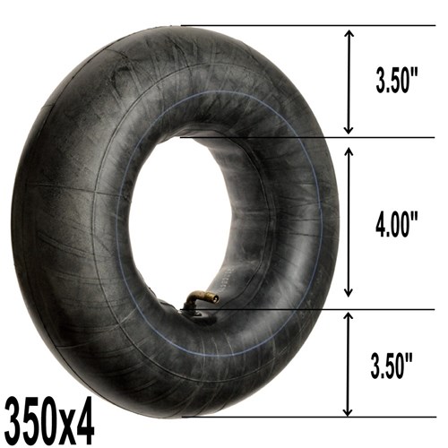 Replacement tube for industrial strength pneumatic wheels. These tubes are replacements punctured tubes and feature a 90 Degree bent valve for easy inflation. Suits Rim Width 3.5". Suits Rim Diameter 4".