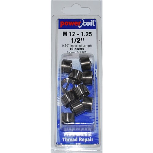 This 10 piece pack of M12x1.25 (1/2" installed length) wire thread repair inserts can be used to repair threads in most applications. This pack contains inserts only. STI tap, applicators and correct drill size required for installation.