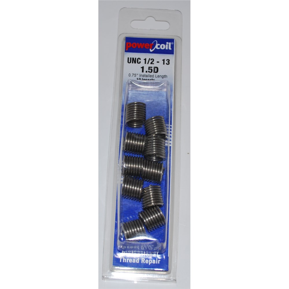 This 10 piece pack of 1/2" UNC (1.5D) wire thread repair inserts can be used to repair threads in most applications. This pack contains inserts only. STI tap, applicators and correct drill size required for installation.