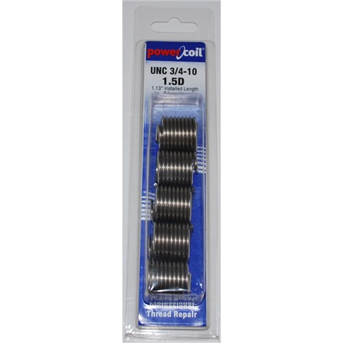 This 5 piece pack of 3/4" UNC (1.5D) wire thread repair inserts can be used to repair threads in most applications. This pack contains inserts only. STI tap, applicators and correct drill size required for installation.