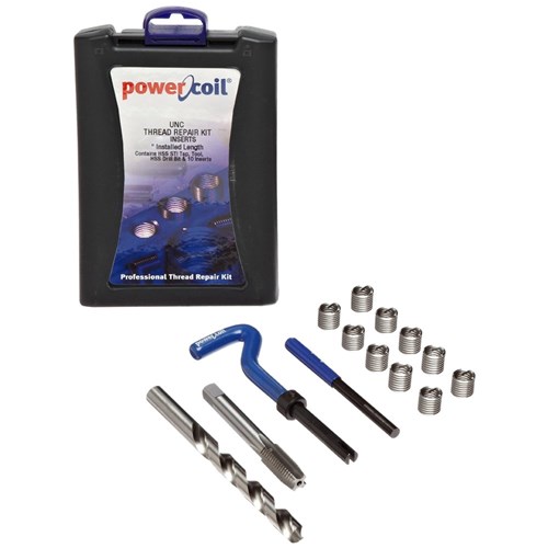 This 7/16" UNC thread repair kit contains 10 wire thread inserts, 2 applicators, a 11.5mm drill and a STI tap (oversized to suit OD of insert). Simply drill out the damaged thread using the specified drill size. Tap out the hole (use STI tap only, this tap is oversized to suit the OD of the insert, however retains the pitch of the original thread). Fit the insert onto the applicator and wind it in! Once inserted be sure to break off the wire thread insert tang to allow clearance through the whole insert.