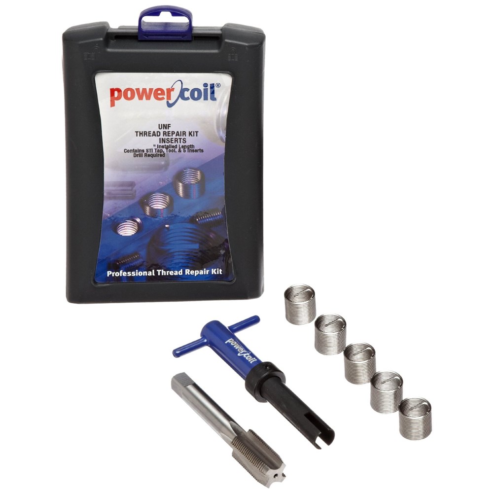 This 3/4" UNF thread repair kit contains 5 wire thread inserts, 2 applicators and a STI tap (oversized to suit OD of insert). Simply drill out the damaged thread using the specified drill size. Tap out the hole (use STI tap only, this tap is oversized to suit the OD of the insert, however retains the pitch of the original thread). Fit the insert onto the applicator and wind it in! Once inserted be sure to break off the wire thread insert tang to allow clearance through the whole insert.