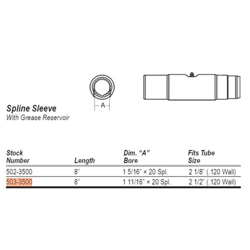 Weasler 35 Series spline slip sleeve . Slip sleeves allow for PTO driveshafts to slip or flexibly move with a given application.