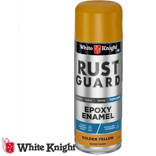 white knight rust guard epoxy enamel is an easy to use, one step, slow drying, rust inhibiting topcoat that will leave a long lasting colour finish on a number of metal surfaces. ideal for use on roofs, metal fences, gates, railings, downpipes and gutters.