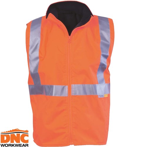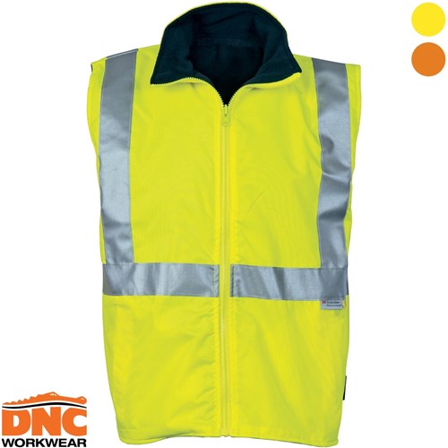 The DNC Workwear Hi-Vis Reversible Vest with 3M Reversible Tape is created from breathable Polyester, 300D. The water proof vest features a fleece navy reversible inner for warmth and convenience, as well as two side pockets and reflective detailing for ultimate visibility.