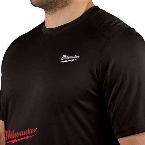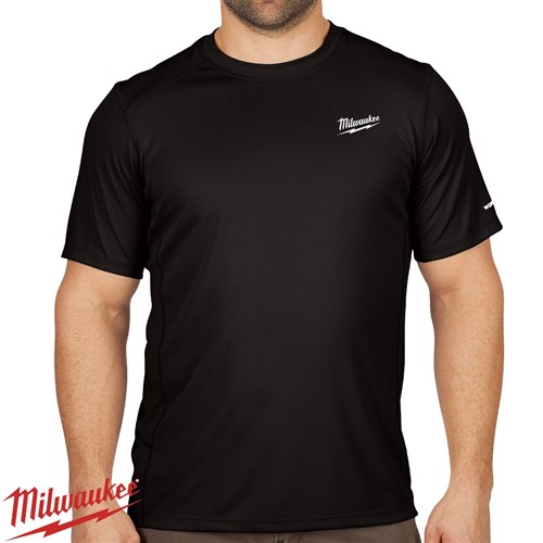 The WORKSKIN Lightweight Performance Short Sleeve Shirt is perfect for those who need a quick-drying, cooling layer next to their skin. Designed to keep up with your daily performance, this high-quality work shirt by MILWAUKEE® features moisture-wicking fabric that keeps you dry. Made from 100% polyester, it dries quickly and resists wrinkles, unlike standard cotton layers. The relaxed regular fit and raglan sleeves provide freedom of movement for comfortable all-day wear. Additionally, the durable, pilling-resistant fabric ensures a longer product life. Available in Black or Grey.