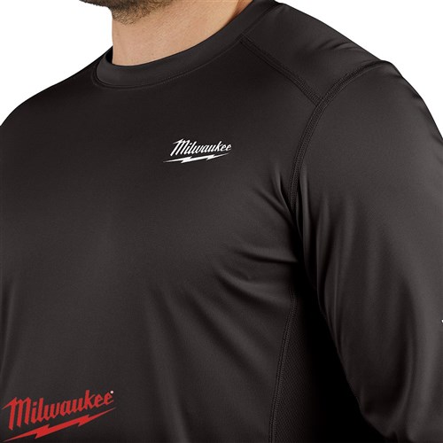 The WORKSKIN Lightweight Performance Long Sleeve Shirt is perfect for those who need a quick-drying, cooling layer next to their skin. Designed to keep up with your daily performance, this high-quality work shirt by MILWAUKEE® features moisture-wicking fabric that keeps you dry. Made from 100% polyester, it dries quickly and resists wrinkles, unlike standard cotton layers. The relaxed regular fit and raglan sleeves provide freedom of movement for comfortable all-day wear. Additionally, the durable, pilling-resistant fabric ensures a longer product life. Available in Black or Grey.