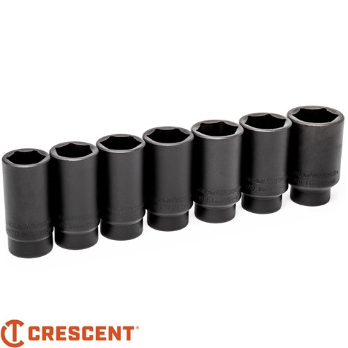 The Gearwrench 7 Piece Axle Nut Socket Set is specifically designed for the efficient removal and installation of axle nuts in heavy-duty applications. Featuring a deep socket style and 6-point metric sockets, this set ensures a secure grip on fasteners, minimizing the risk of rounding. Designed for use with a 1/2" square drive tool, these sockets are compatible with a ratchet, breaker bar, impact wrench, or torque wrench, providing versatility for any job. The set comes with a durable blow mould case for easy storage and organization, making it a must-have for any mechanic or automotive enthusiast.
