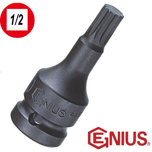 Genius 1/2" Square Drive In-Hex Spline Drive Socket.Manufactured from Chrome Molybdenum Steel 76mm long. Designed to be used in hi-torque impact drivers.