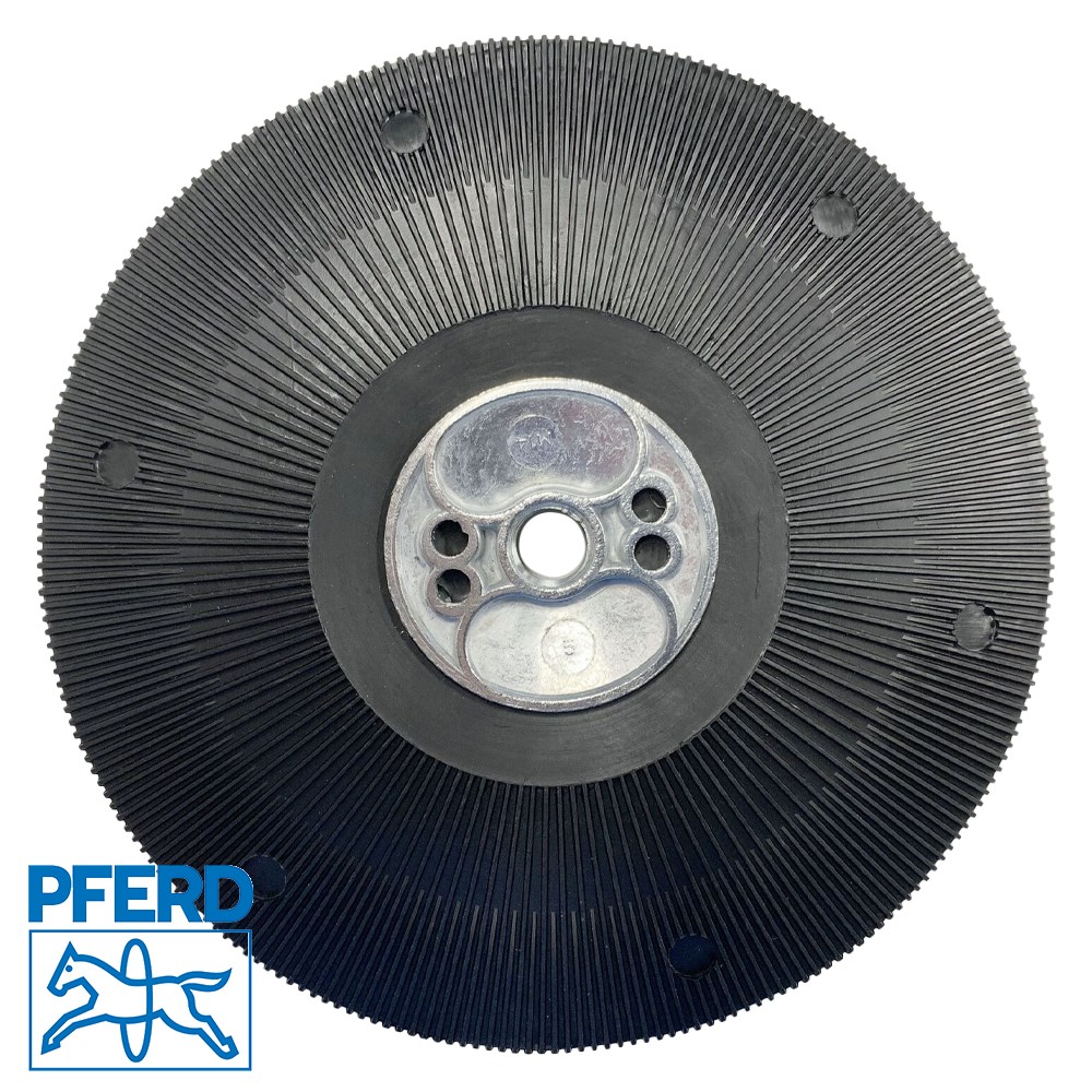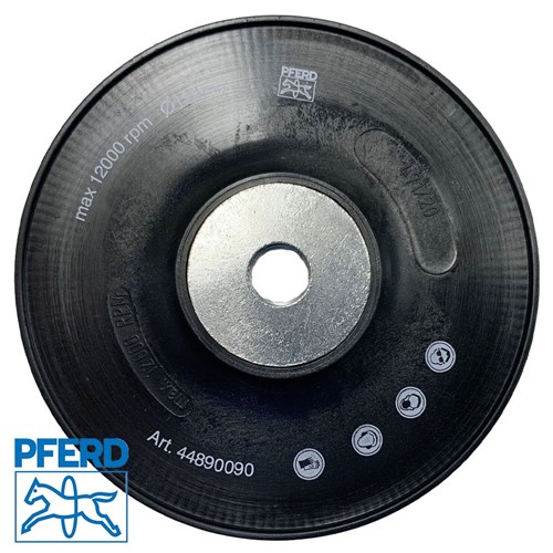High-performance backing pad for use with fibre discs on commercially available angle grinders.