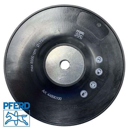 High-performance backing pad for use with fibre discs on commercially available angle grinders.