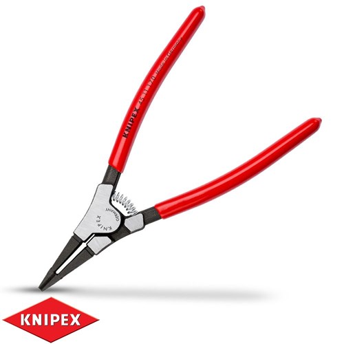 The Knipex Retaining Ring Pliers are expertly crafted for the precise installation and removal of external circlips on shafts. Built from high-grade chrome vanadium steel, these pliers are forged and oil-hardened for superior strength and longevity. Featuring straight precision tips and an integrated opening spring, they deliver reliable control and reduce hand fatigue during repetitive tasks. The plastic-coated handles provide a secure, comfortable grip—making them ideal for professionals and serious DIY users.