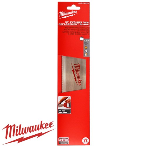 The Milwaukee 305mm (12”) PVC Saw Replacement Blade is compatible for use on the PVC/ABS Saw Handle and most other PVC Saw handles. Suitable for us on plastic, plywood, wallboard and laminate.