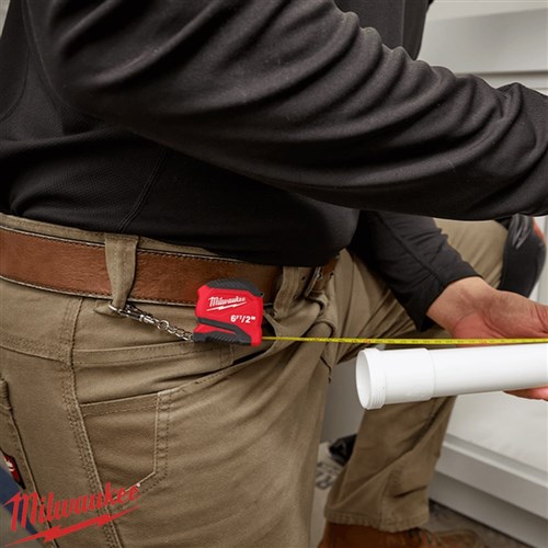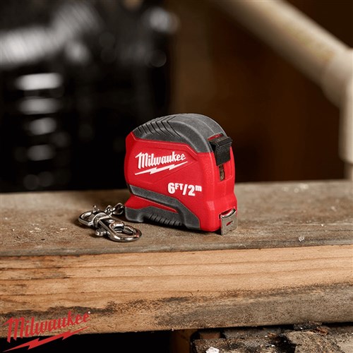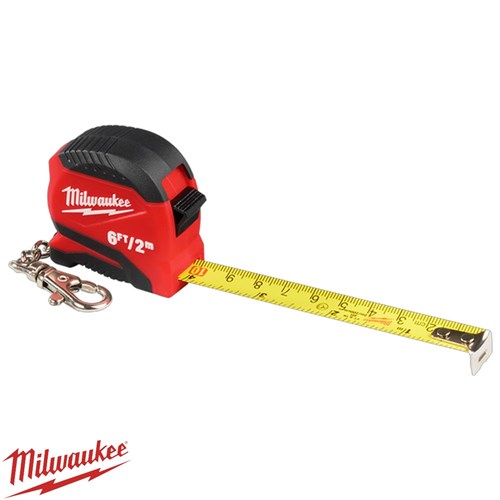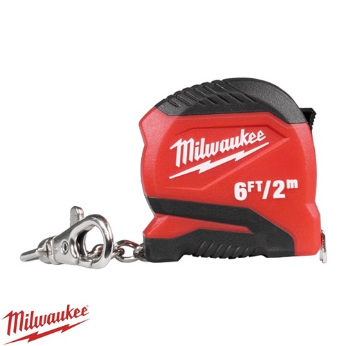 The Milwaukee 2M Keychain Tape Measure is a compact and durable measuring tool designed for convenience and reliability on the go. Its reinforced 5-point body and nylon blade protection ensure resistance to drops and jobsite wear, while the heavy-duty keychain clip allows you to attach it to belts or keys for easy portability. Dual-printed Metric and Imperial scales make measurements quick and precise.