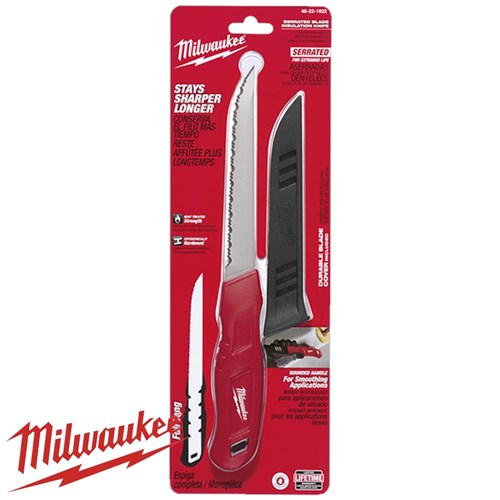 The Milwaukee Smooth Blade Insulation Knife is engineered with a stainless steel blade to stay sharper for longer, with a rounded handle for increased comfort. The Blade is suitable for use on mechanical and HVAC insulation.