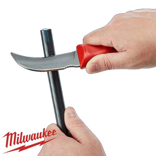 The Milwaukee Fixed Blade Hawkbill Knife is designed for stripping wire and cable. The oversized stainless steel blade stays sharper for longer, with a comfortable and ergonomic handle.