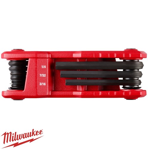 The Milwaukee Folding Hex Key Sets offer one of the easiest key accesses on the market. The handle features access zones and a key shelf, allowing quicker retrieval of the needed key. With long-lasting, high-contrast markings, the handle makes it easy to identify the correct size. The full metal body construction withstands high torque and extends the tool's life in tough jobsite conditions, while the handle's shape is optimized for comfort. The keys rotate 270° for better access and torque in tight spaces. This convenient folding hex wrench set simplifies transportation and storage. It is backed by Milwaukee’s Limited Lifetime Warranty.