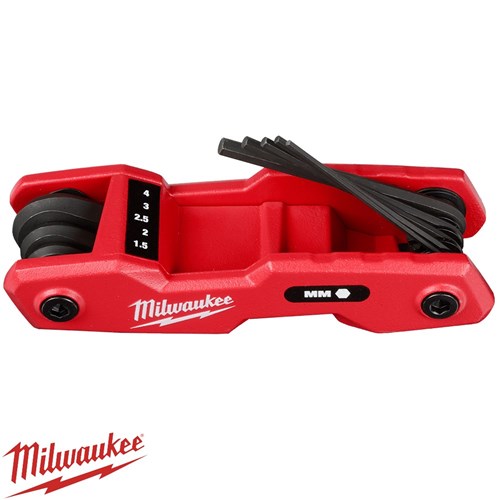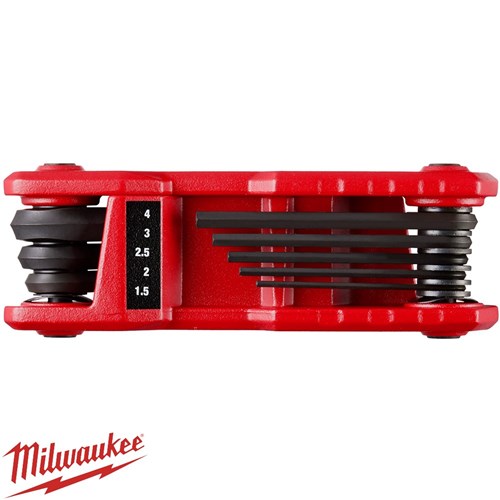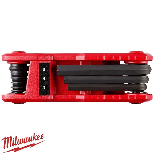 The Milwaukee Folding Hex Key Sets offer one of the easiest key accesses on the market. The handle features access zones and a key shelf, allowing quicker retrieval of the needed key. With long-lasting, high-contrast markings, the handle makes it easy to identify the correct size. The full metal body construction withstands high torque and extends the tool's life in tough jobsite conditions, while the handle's shape is optimized for comfort. The keys rotate 270° for better access and torque in tight spaces. This convenient folding hex wrench set simplifies transportation and storage. It is backed by Milwaukee’s Limited Lifetime Warranty.
