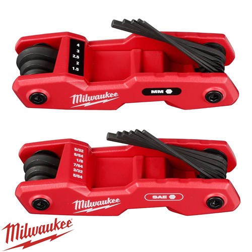 The Milwaukee Folding Hex Key Sets offer one of the easiest key accesses on the market. The handle features access zones and a key shelf, allowing quicker retrieval of the needed key. With long-lasting, high-contrast markings, the handle makes it easy to identify the correct size. The full metal body construction withstands high torque and extends the tool's life in tough jobsite conditions, while the handle's shape is optimized for comfort. The keys rotate 270° for better access and torque in tight spaces. This convenient folding hex wrench set simplifies transportation and storage. It is backed by Milwaukee’s Limited Lifetime Warranty.