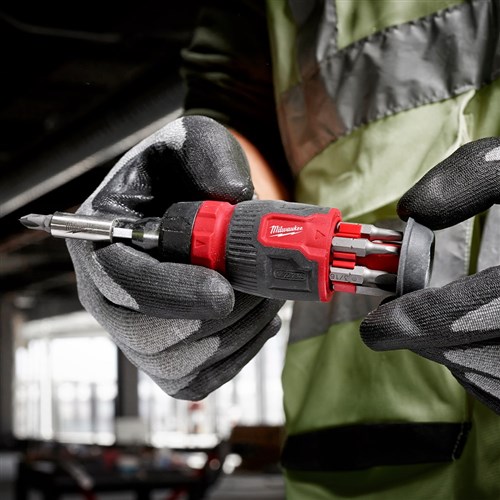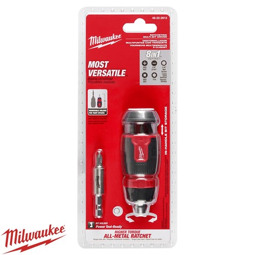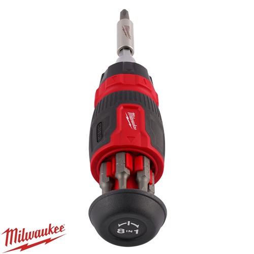 The Milwaukee® 8-in-1 Compact Ratcheting Multi-Bit Screwdriver is a very versatile multi-bit screwdriver.