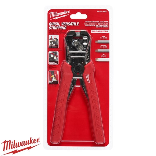 The Milwaukee Self-Adjusting Wire Stripper offers quick, versatile wire stripping of 0.50 - 6mm² (10-20 AWG) solid & 0.34 - 4.0mm² (12-22 AWG) stranded wires and 12/2 and 14/2 non-metallic cable.
