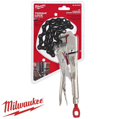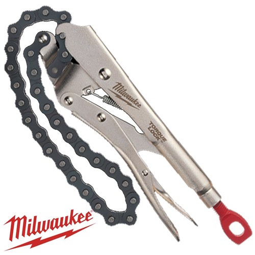 The Milwaukee 228mm (9”) Torque Lock Chain Wrench is ideal for professional trade use, with a locking chain to provide increased locking force for use on any object. High levels of torque are generated, allowing the user to have greater gripping power. Created from forged alloy steel for durability, this Chain Wrench is suitable for the toughest job.