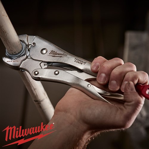 The Milwaukee 254mm (10”) Maxbite Curved Jaw Locking Pliers are engineered with Torquelock for increased force and a maximised jaw bite for use on rounded pipe, hex bolts and various other locking tools. Featuring control release, forged alloy steel for increased durability and hardened jaws, these locking pliers are suitable for the toughest jobs.