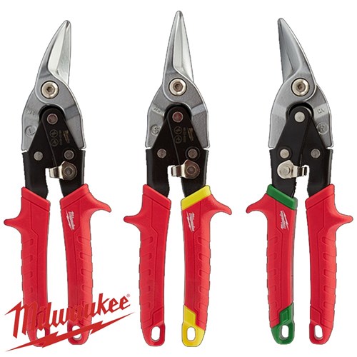 The Milwaukee 3 Piece Offset Aviation Snip Set is engineered for long lasting durability and use, with forged blades, rust protection and chrome plating to deliver up to 10x more cuts. The Aviation Snips can be used one handed and feature a lock to secure the tool for easy storage.
