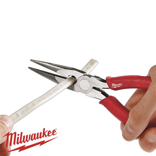 The Milwaukee 203mm Long Nose Pliers are designed to provide maximum grip for pulling wire and material through holes or tight spaces. Reaming ridges and an integrated pipe cutter make the tool ideal for removing burrs. The pliers are forged for increased strength, with rust protection and moulded grips to increase comfortability, durability and life.