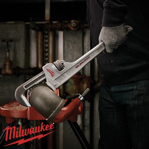 The Milwaukee 457mm (18”) Aluminium Pipe Wrench features an overbite jaw to offer the largest possible gripping surface, dual coil springs and hardened jaws to provide maximum durability and long life. An ergonomic handle ensures the user will be comfortable for extended usage time.
