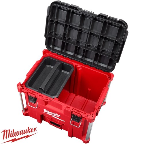 The PACKOUT™ XL Tool Box is built to endure tough jobsite conditions with its impact-resistant polymers and metal-reinforced corners. With a 45kg weight capacity and an IP65-rated weather seal, it provides reliable protection against rain and debris. This tool box seamlessly connects with all PACKOUT™ system components via integrated locking cleats, offering modular storage that you can customize to meet your needs. The interior organizer tray helps keep your tools in order, while reinforced hinges and heavy-duty latches ensure long-lasting durability. As part of the MILWAUKEE™ PACKOUT™ system, it's the most durable and versatile storage solution available.
