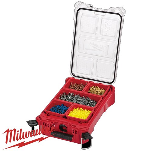 The Milwaukee Packout Compact Organiser is designed for hassle free and convenient transportation with removable dividers and divider seals. The impact and water resistant polymer construction provides maximum durability, while the IP65 rating will ensure all parts remain secure and safe from any damage.