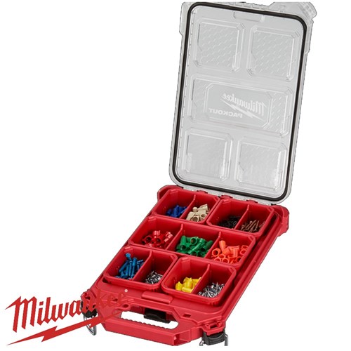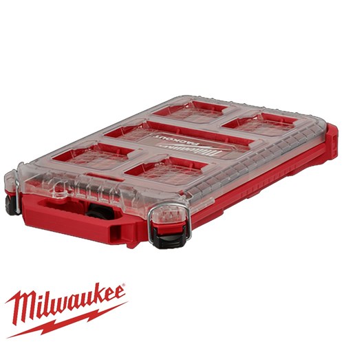 The Milwaukee Packout Low Profile Compact Organiser is a modular storage system that has been manufactured to withstand tough environmental conditions. With a slim design, IP65 rated seals, no travel bin seals, reinforced hinges