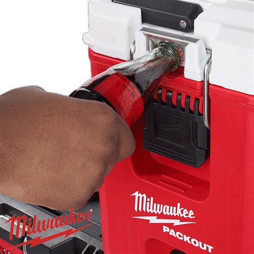 The Milwaukee Packout Hard Sided Cooler is compatible for use with the large range of Milwaukee modular Packout storage units. The impact resistant polymer construction, heavy duty latches and integrated top handle provides ice for up to 30 hours. The cooler also features an in built bottle opener and interior storage tray provide versatile storage for on and off jobsites.