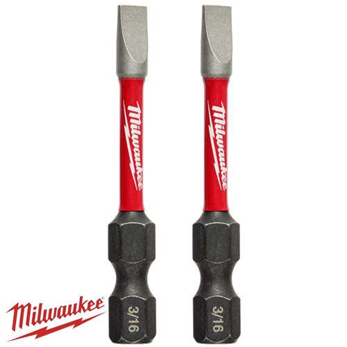 Milwaukee SHOCKWAVE™ Power Bit Slotted 3/16" 50mm (2") – 2 Pack