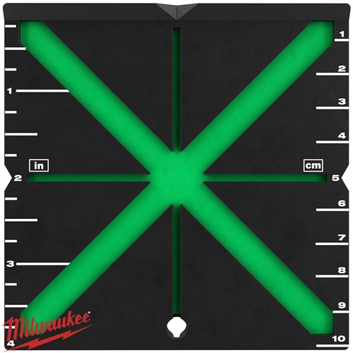 The Laser Target offers quick and visible alignment feedback for setting lasers with a floor point or checking offsets. Its X design provides responsive centring feedback, guiding your laser line to the centre for faster alignment. The high-visibility illumination ensures easy readability, and the target includes 1/4" and 1cm increments for precise measurements. It also features a hang hole and a wide magnetic base, ideal for floor use or attachment to ferrous surfaces. The high-contrast reflective surface is designed for optimal use with MILWAUKEE® lasers.