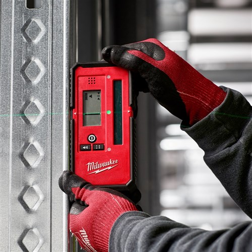 The 50m (165') Laser Detector enhances laser functionality for precise point-to-point alignment up to 50 meters, both indoors and outdoors. High-visibility LED indicators on the front and back make setup faster and easier. With rare earth magnets on two sides, this detector attaches securely to metal surfaces, making it ideal for tasks like ceiling grid installation. It also includes a material clamp for convenient elevation adjustments. The Laser Detector is compatible with MILWAUKEE® Cross Line and Plane lasers and features adjustable audio settings, an IP54 rating for water and dust resistance, and 1-meter impact durability.