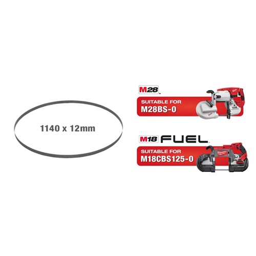 Milwaukee Bandsaw Blades, 1140mm Deep Cut, 24TPI, Pack of 3. For Use on Milwaukee M28/ M18 Fuel Cordless Bandsaws. Maximize your band saw performance and make straight, accurate cuts in a variety of materials with the Milwaukee 24 TPI Standard / Deep-Cut Portable Band Saw Blades. Get exceptional durability and accuracy for your portable band saw that takes a 44-7/8" blade. Milwaukee's standard/deep cut band saw blades deliver long tooth life in a variety of metal, including strut, conduit, angle iron, copper tube, threaded rod and pipe. The blade's tooth form, pitch and set ensure straight, accurate cuts time and time again.