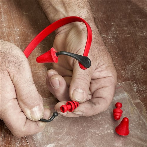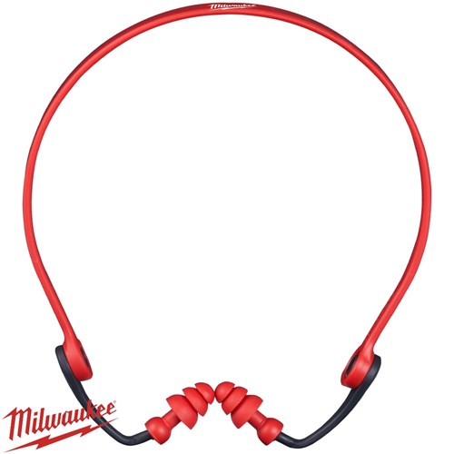 Milwaukee's Banded Ear Plugs offer all-day comfort and protection on the jobsite. Featuring a low-profile band, these earplugs are designed for easy adjustment and pivoting to ensure a secure fit, even in tight spaces or when wearing additional safety gear like hard hats and masks. The banded design helps maintain hygiene by reducing direct contact with the inner ear plugs. Made from soft, comfortable foam, the earplugs expand quickly to form a secure seal against harmful noises. With an adaptable design that supports 3-point wear and interchangeable foam or flanged earplugs, these earplugs provide versatility and comfort. They are AS/NZS 1270:2002 certified with an SLC80 rating of 20dB (Class 3).