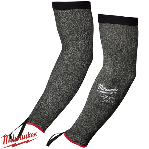 Milwaukees 18" Cut Resistant 5(E) Sleeves are designed to provide you with a comfortable fit and all-day protection. They have a secure tapered fit to help reduce material bunching. The moisture-wicking fabric helps you to stay cool and dries fast. The protective arm sleeves are knit with 13-gauge material that is lightweight and breathable.