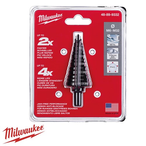 With laser etched markings that are hard-wearing and a 3-Flat Shank you can be confident while drilling with MILWAUKEE Step Drill Bits.