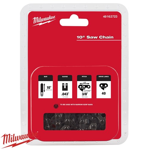 The Milwaukee 10” (254 mm) Pole Saw Chain is designed for use with the M18 FUEL 10" Pole Saw Attachment [M18FOPHCSA]. This replacement chain delivers fast, efficient cuts with reduced vibration and minimal kickback. It features a durable, weather-resistant design for enhanced longevity and reliable performance.