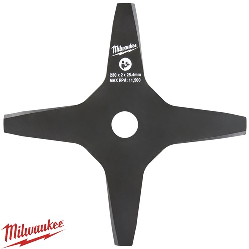 The Milwaukee 4 Tooth Brushcutter Blade is designed for use with Milwaukee Brushcutters, including the M18 FUEL™ Brushcutter [M18FBC] and M18 FUEL™ Brushcutter Attachment [M18FOPHBCA]. This steel blade is a direct replacement for the blade included with both the M18 FUEL™ Brushcutter and the Brushcutter Attachment.