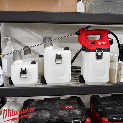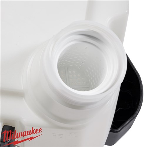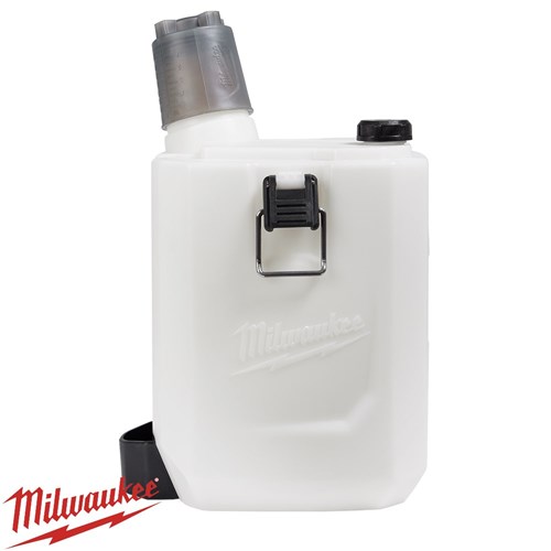 The 4-Litre Handheld Chemical Sprayer Tank is designed to be compatible with the Milwaukee M12™ Handheld Chemical Sprayer Powered Sprayer Head (sold separately). This tank features an onboard measuring cup, a strainer for debris filtration, and an intake hose. Its translucent walls make it easy to monitor liquid levels, while the metal latches and sturdy, square design ensure durability.