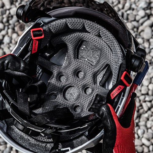 - Removable, machine-washable sweatband and helmet liner