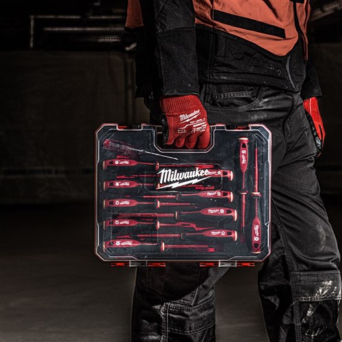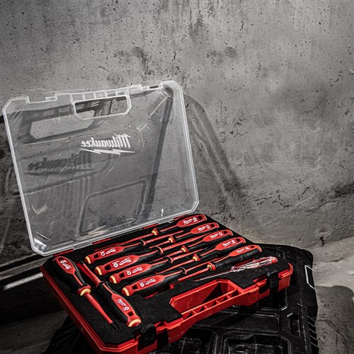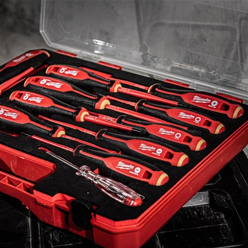- 12-piece VDE screwdriver set with hardened, magnetized tips