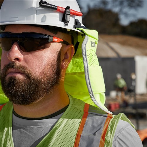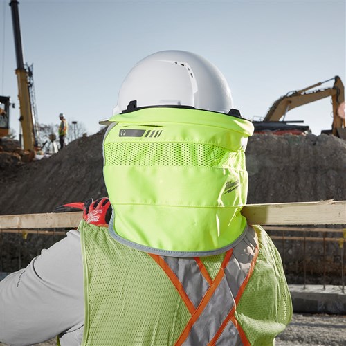 The Milwaukee BOLT Sunshade offers UV protection and everyday wear to keep you safe and productive. Made from moisture-wicking, UPF50+ material, it helps you stay cool and dry while shielding you from the sun. The sunshade clips easily onto the hard hat and is compatible with MILWAUKEE® and most professional helmets and hard hats. It features dedicated earmuff slots and BOLT accessory slots, allowing you to use additional accessories simultaneously.
